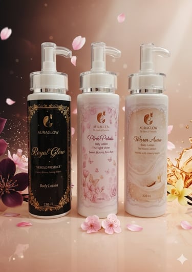 High-performance body lotion and long-lasting body splash for a 24-hour glow. Auraglow blends luxury fragrance with deep skin hydration to keep you feeling fresh and radiant. Explore our body care collection.